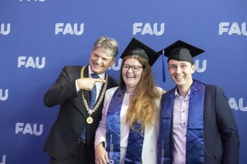 On June 22, 2024, the FAU honored all doctoral candidates who recently received their doctorates, as well as those who received their doctorates 15, 25, 50 or even 60 years ago, at a ceremony in the Heinrich-Lades-Halle in Erlangen. Viktoria Heimann and Andreas Spruck, who both completed their doctorates at the LMS in the field of image and video processing under the supervision of Prof. André Kaup, also took part in this ceremony.