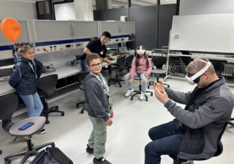On October 25, the twelfth Lange Nacht der Wissenschaften took place in the Erlangen-Nuremberg-Fürth metropolitan region from 5 p.m. to midnight. Thousands of visitors took part, and the LMS was involved as well with two demonstrations. At the LMS booth, visitors could use VR glasses to virtually take a seat in a string quartet and participate in the musical performance acoustically and visually. A second demonstration showed how a fleet of robots can determine their respective locations and detect whether individual modules are malfunctioning. Both demonstrations were very well attended and attracted many interested visitors late into the night.